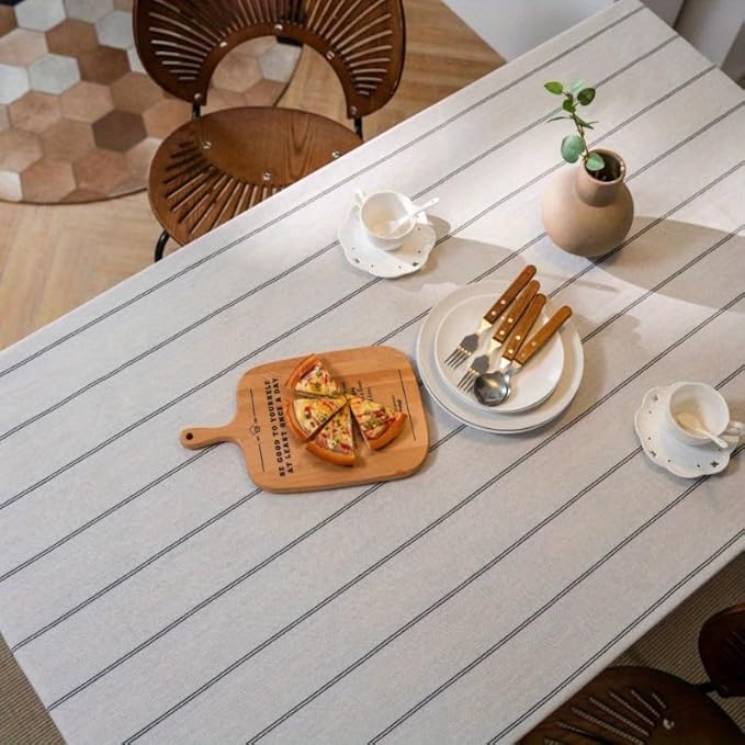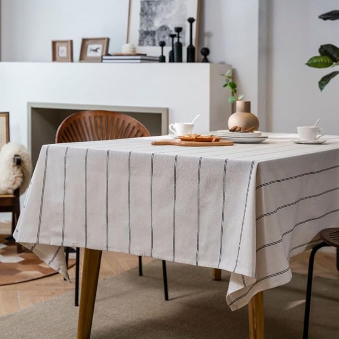 - ✅ Material: This white striped tablecloth is made of high quality cotton and linen, soft and smooth, sturdy and durable, won't fade, wrinkle resistant.