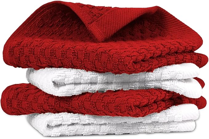 - SUPER SOFT ABSORBENT TOWELS: Set of four dishcloths towels; each kitchen cloth size 12 x 12 inches, each terry towel is made of 100% cotton dobby weave, which gives them an incredibly ultra-soft feel and absorbency to dry effectively; treat yourself with these beautiful dish cloths.
