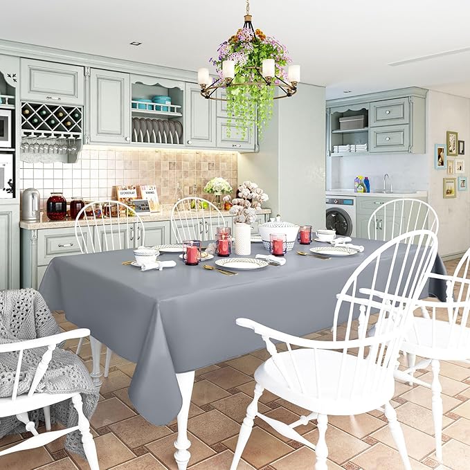 homing Rectangle Vinyl Tablecloth, Waterproof Spillproof Plastic Flannel Backed Table Cloth, Wipe Clean Table Cover for Dining, Buffet Parties and Camping (Grey, 60" x 84")
