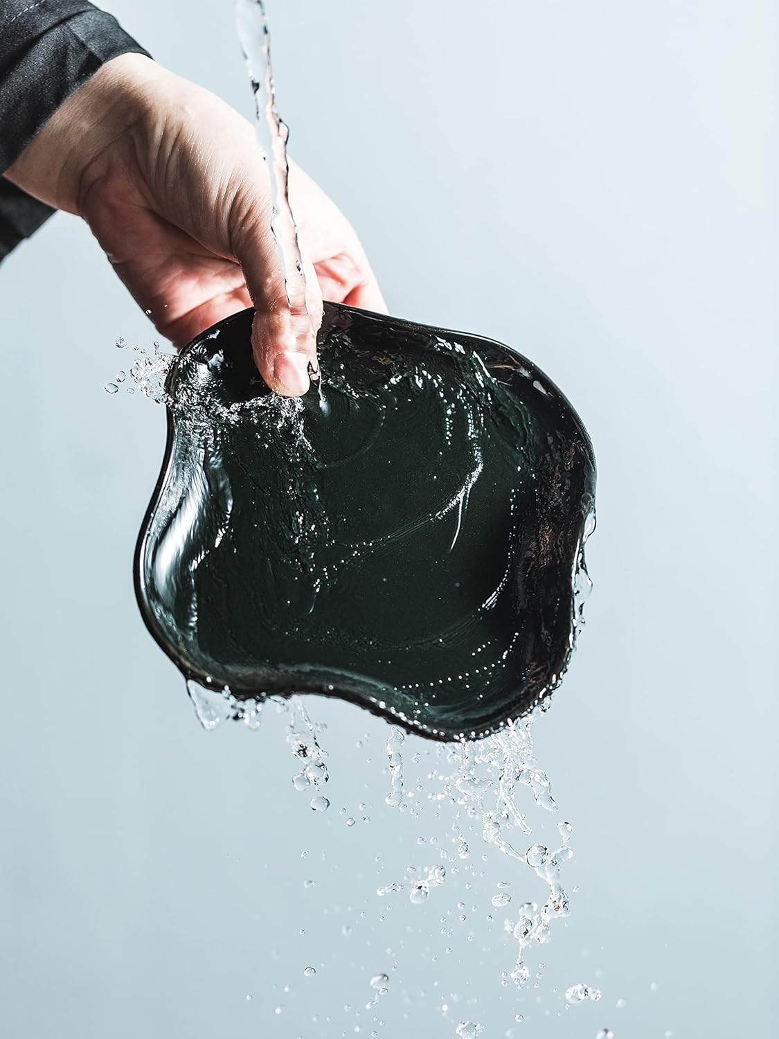 Spoon Holder, Porcelain Spoon Rest with Deep Drip Tray for Kitchen Counter, for Multiple Utensils, Heat-Resistant, Cute Spoon Rest for Spoons, Ladles, Tongs and etc, Black, Ruffled Edge,5.12"