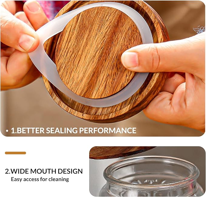 - 【STRONG SEALING】The cover is made of high-quality natural wood, The sealing cover is equipped with a food-grade silicone sealing ring, which effectively prevents the flow of gas, allowing food to be stored for a longer time.