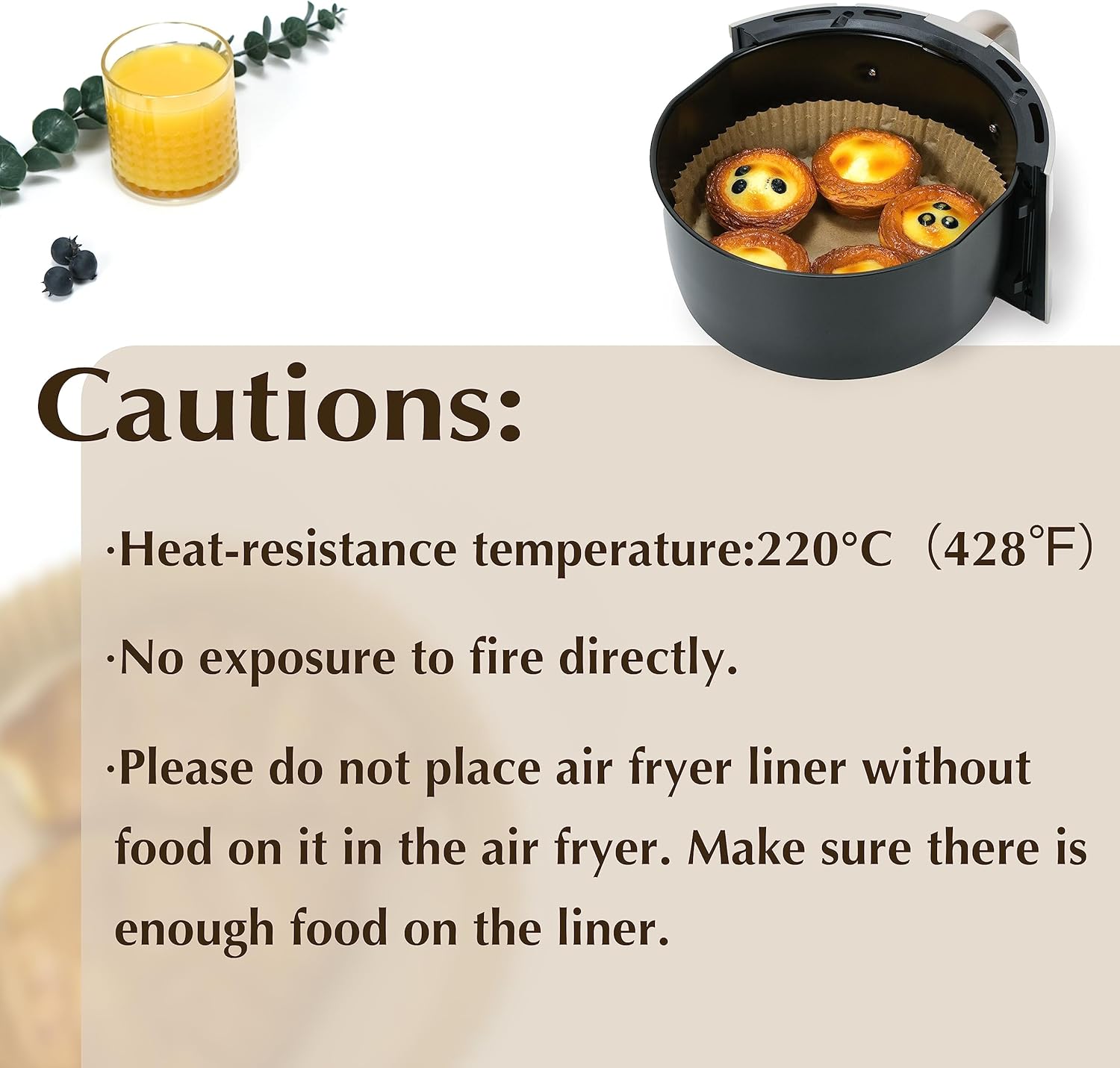 - Premium Quality: Our food-grade Air Fryer Paper Liners are made from high-quality wood designed to withstand high temperatures up to 220°C (428℉), ensuring safe and worry-free cooking.