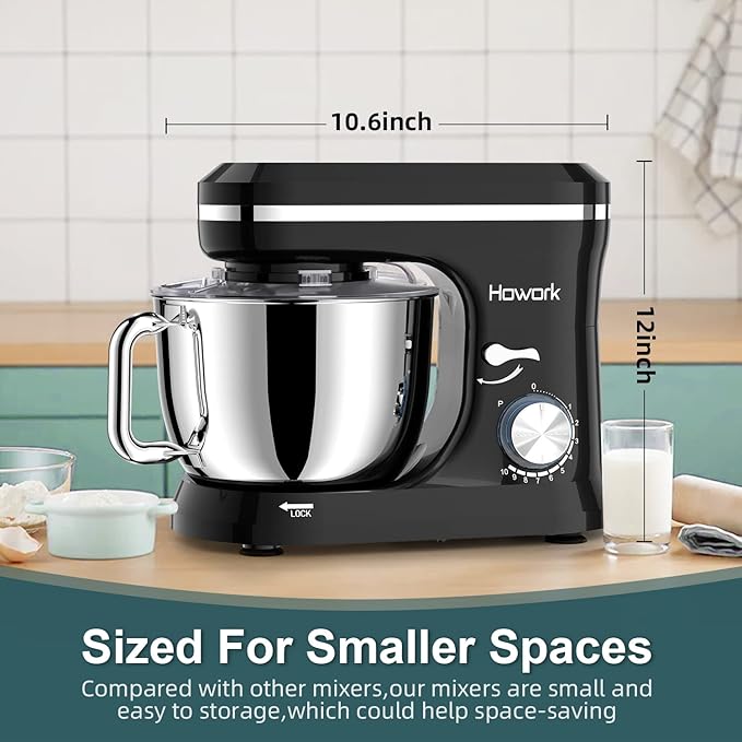 HOWORK Electric Stand Mixer,10+p Speeds With 6.5QT Stainless Steel Bowl,Dough Hook, Wire Whip & Beater,for Most Home Cooks,Black