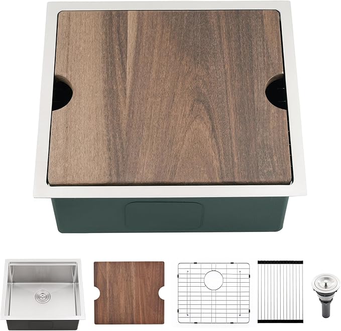 21 Inch Undermount Bar Sink, 21x18 Workstation 16 Gauge Stainless Steel Undermount Outdoor Kitchen Sink for RV Wet Bar Prep Basin