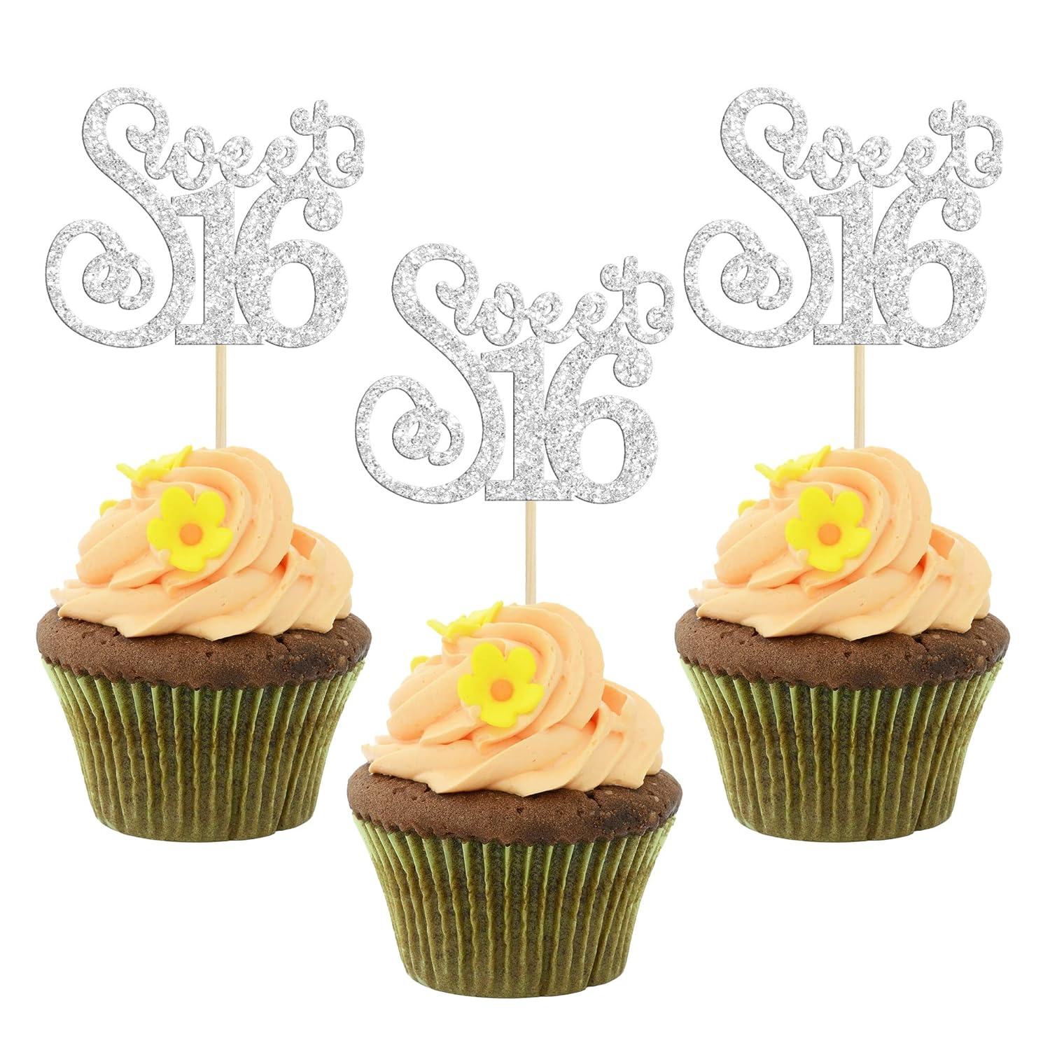 - 💕💕These Sweet 16 Cupcake Toppers are so cute and good for 16th birthday theme party, 16th anniversary theme party, 16 fabulous theme party cupcake decorations. They can make your cupcake more attractive and bring the fun to your party. You can also apply them for ice cream, fruits, cookies and other desserts.