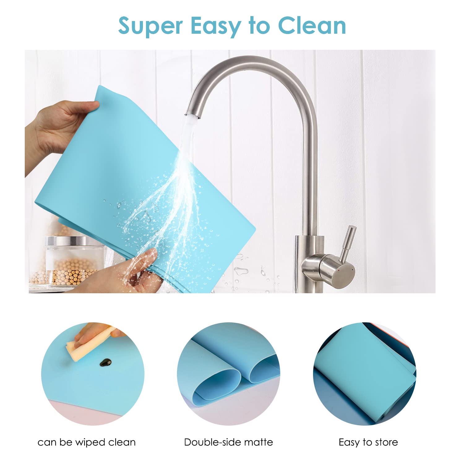 - 🍲 【Multi-Function Mat】: The blue silicone mats for kitchen counter are durable and easy to store, will not wrinkle due to temperature, silicone mats for kitchen counter is not deformed, vibrant color, cuttable, perfect as a non-stick silicone baking mat, silicone kids placemat, craft mat, silicone dab mat, can also be placed on the top of the dryer to prevent scratches.