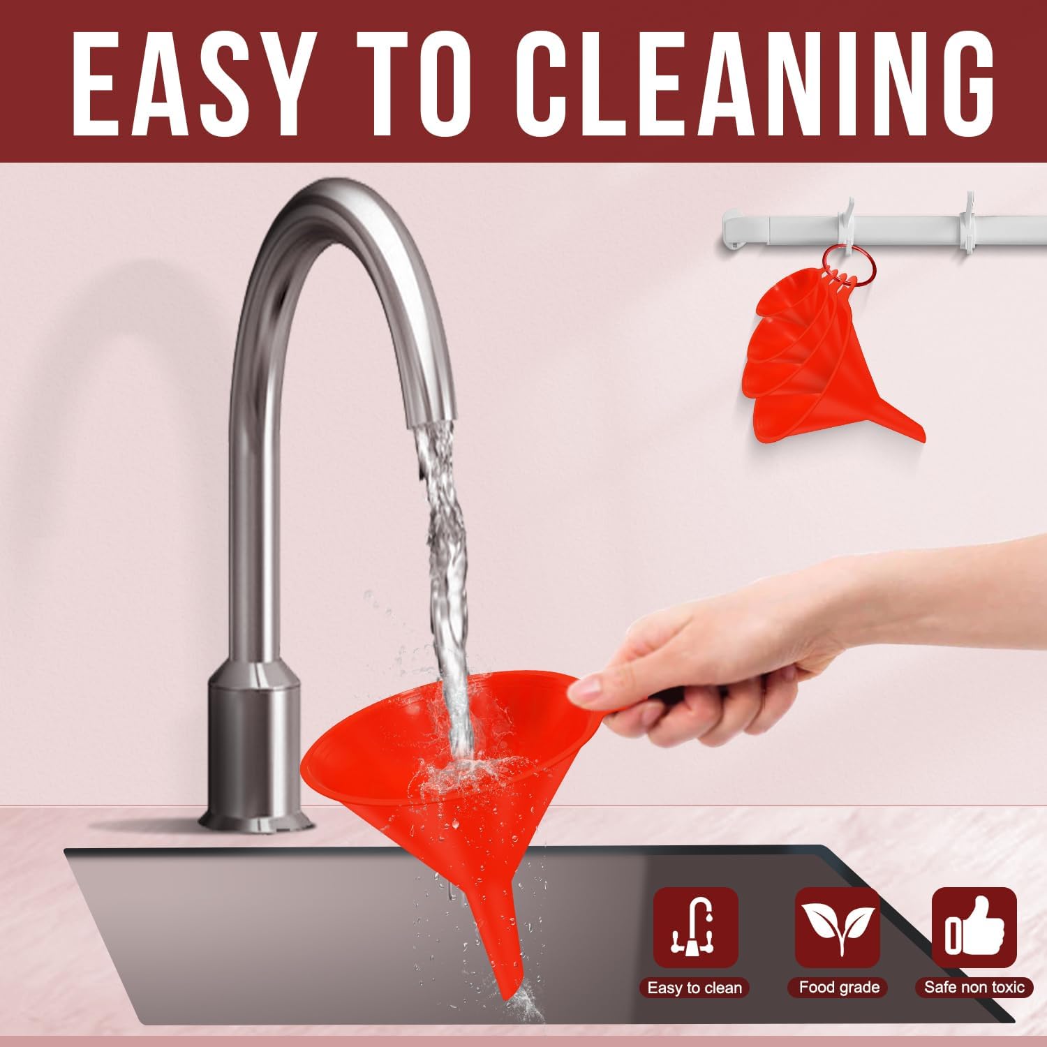 - 【Easy to clean 】: Smooth surface, so that when you treat stains, just add a little cleaner, and then rinse with water, you can deal with clean. The small holes at the edge of the funnel allow you to hang them on the wall of the kitchen, in the cabinet, or camping outdoors, are a good choice