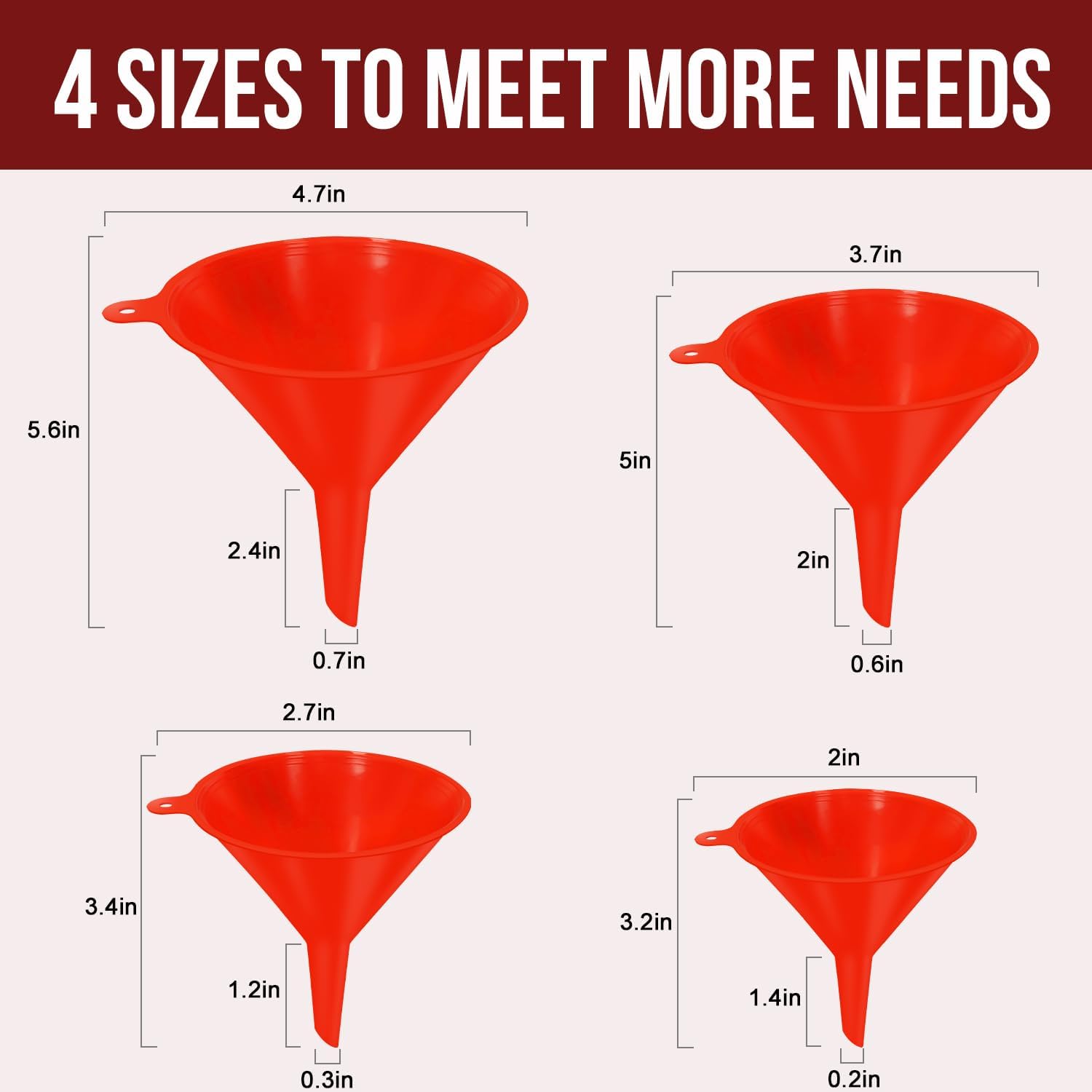 - Color : 4pcs red plastic funnels