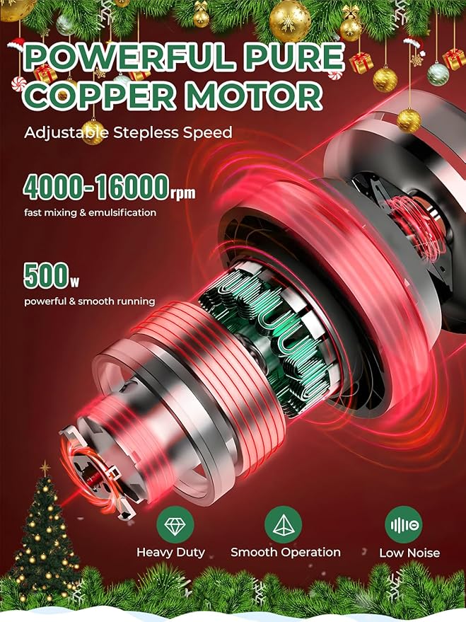 - Powerful: This commercial immersion mixer is equipped with a 500W ultra powerful pure copper motor, which has a longer service life. Capable of stepless speed regulation, 4000-16000RPM, fast mixing and emulsifying. Heavy-duty structure, smoother operation, and lower noise generated during use