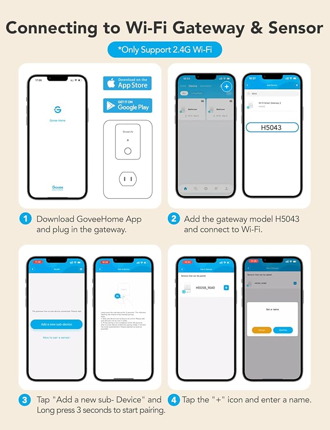 - Voice Assistant Reminder: Intelligent voice control allows more freedom if you don’t want to look at your phone at home or not with you. Easily pinpoint water leaks using GoveeHome App or Alexa Voice Assistant.