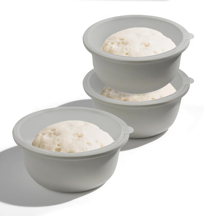 3Pcs Stackable Silicone Pizza Dough Proofing Proving Containers with Lids,Pizza Dough Proofing Box 700ml For Home Kitchen | Make 12" Pizzas (Grey)