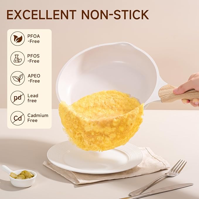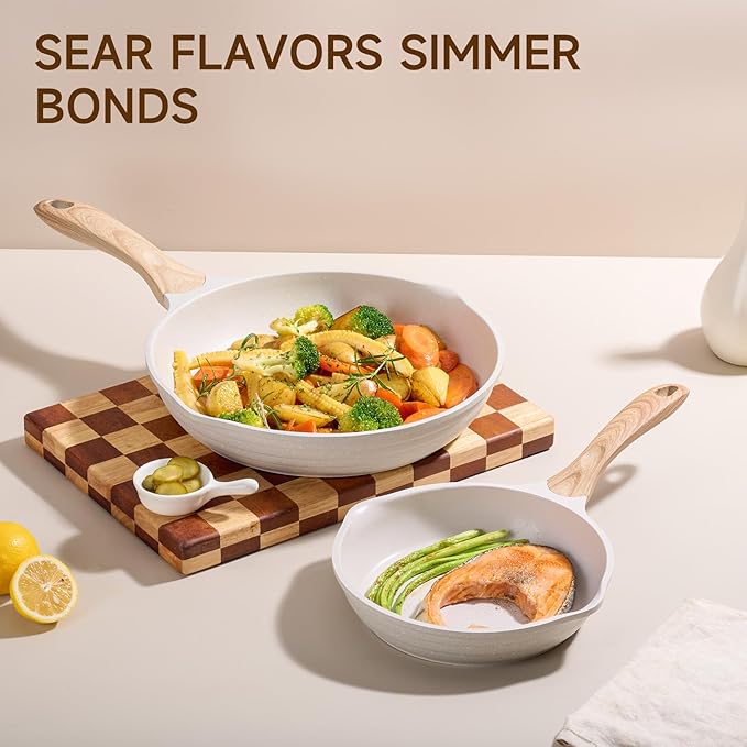 - Professional-Grade Performance: Engineered with reinforced aluminum core, this beige chef-crafted pots and pans set delivers restaurant-quality results. Withstands 464°F all stovetops including induction, ceramic, gas & electric stove