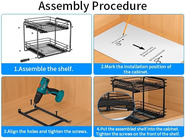 - MEASURE CABINET FIRST & EASY ASSEMBLE- This spice rack organizer needs 10"wide x 11"deep x 12"high cabinet space with standard spice jars on the upper tier.It's NOT suitable for a cabinet edge with lip!Easy to assemble and use,just follow the instructions,you can easily assemble in minutes.NOT INCLUDES SPICE JARS!