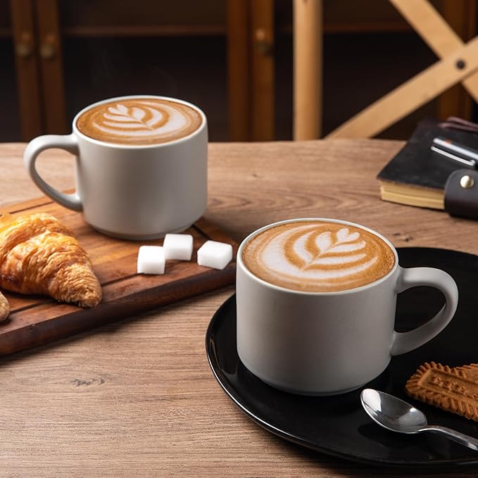 - Stylish Design With Stable Base : These coffee mugs with a humanized design handle that provides a comfortable and secure grip, the handle remains cool even after microwaving and the beverages stay warm. These mugs set feature a matte glaze and smooth rim ensures a comfortable drinking experience, and the stable base is safe for daily using.