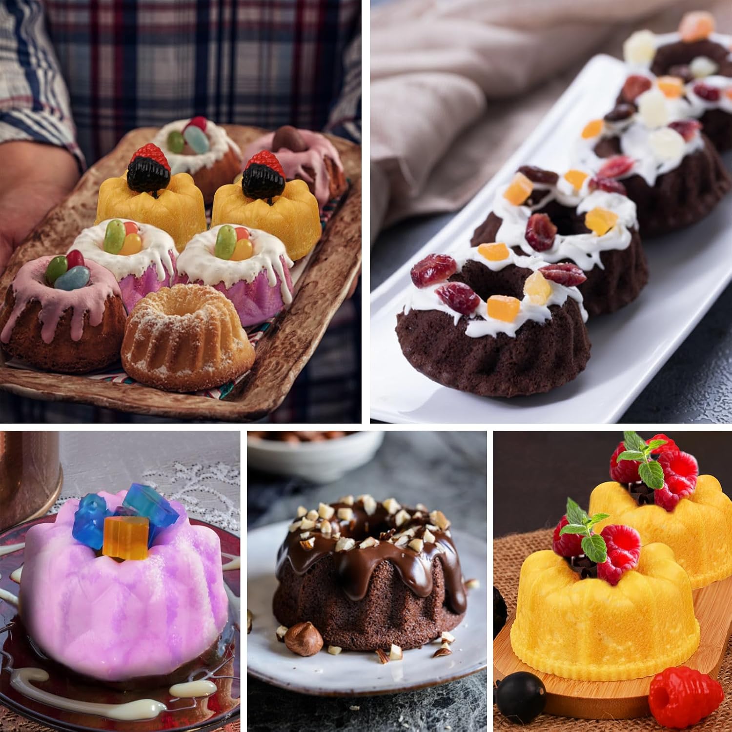 HUAKENER 2 Pcs Mini Fluted Cake Pan, 6-Cavity Fluted Tube Cake Pan, Non-stick Silicone Baking Mold for Cupcakes, Donuts, Cornbread, Brownies, Jellies