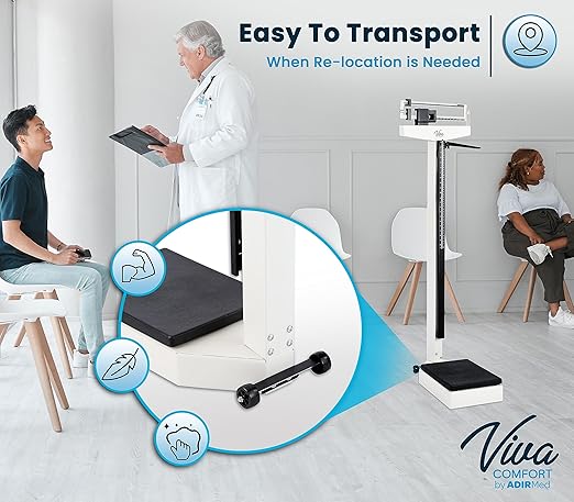 AdirMed Mechanical Physician Scale with Height Rod - Manual Measuring Scale - Eye-Level Display Dual Reading Die-Cast Beam with Two Sliding Weights & Retractable Height Rod