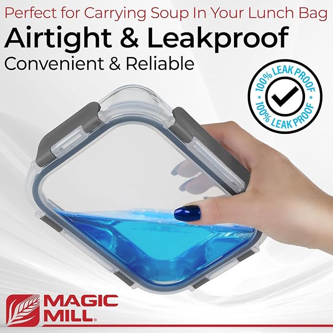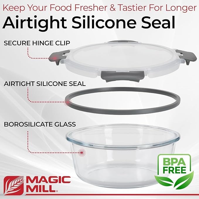 - MAGIC MILL'S ULTIMATE GLASS FOOD STORAGE CONTAINERS – Transition from plastic to a sustainable lifestyle with our premium glass food storage containers made from high-quality borosilicate glass, designed to last and offer a long-term solution for storing your favorite meals and ingredients.