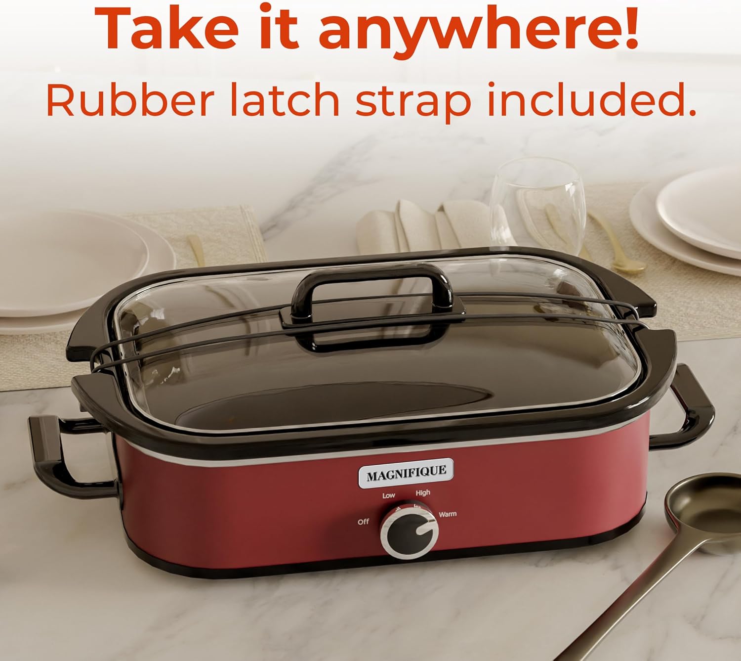 [NEW] MAGNIFIQUE 4-Quart Slow Cooker with Casserole Manual Warm Setting - Perfect Kitchen Small Appliance for Family Dinners, Dishwasher Safe Crock, Red