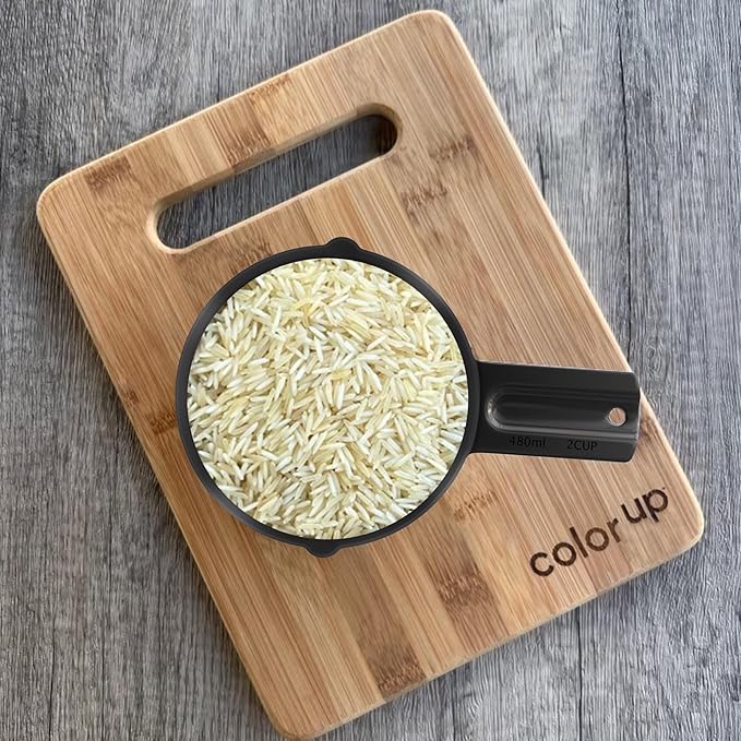 - Black 2 Cup Measuring Scoop with Engraved Markings: Laser-etched with 2 cup (2 tazas), 1½, 1, ½ cup, and 480ml indicators. Clear, permanent measurements in both US and metric units.
