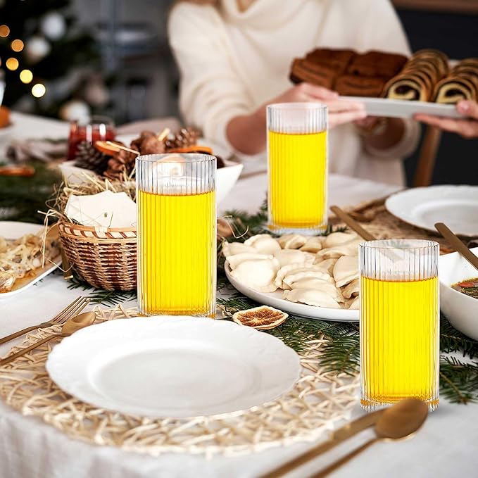 - Elegant and Vintage: these ribbed highball glasses feature straight lines design and ripple style that gives them a charming rustic look, adding a touch of sophistication to most table setting