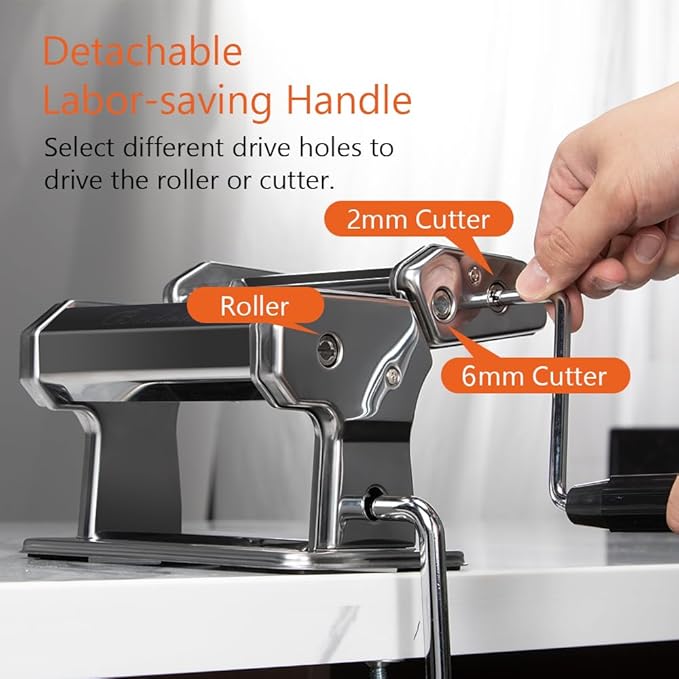 - 2 WIDTH CUTTER - The pasta you make has two widths of 2mm and 4mm to choose from, which can meet your needs for making different pasta, perfect for spaghetti, fettuccini, lasagna. The cutter's detachable design makes storage and cleaning more convenient.
