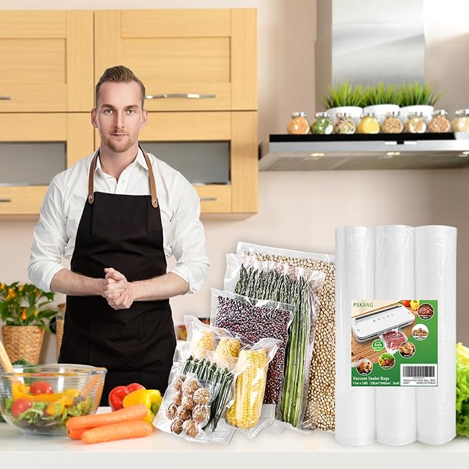 - 【PSKANG VACUUM SEAL BAGS FOR FOOD】- Pskang upgrade BPA free vacuum sealer bags rolls are made with top raw materials. Heavy duty puncture proof and unique embossed design of this vacuum sealer bags keep food fresh without freezing burn or dehydration. Experience foods at the peak of freshness and reduce food waste with bags rolls. Add vacuum sealing to your tips of money-saving strategies, like buying in bulk and shopping for ingredients seasonally.
