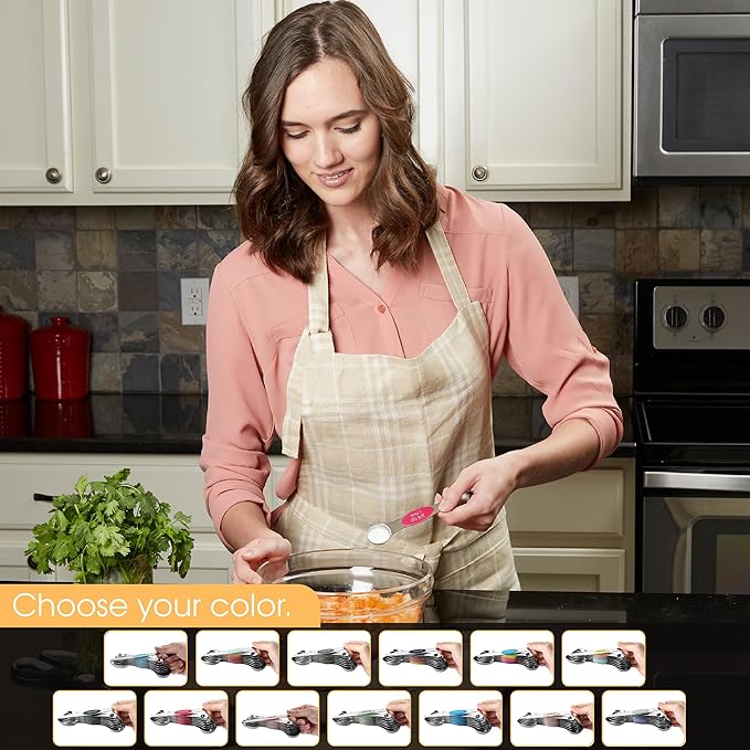 - Magnetic For Easy Use And Storage - These magnetic spoons let you use one spoon at a time and then they nest together for easy storage. Quickly grab the spoon you need without having to fumble with opening and closing a ring. This kitchen measuring set has U.S. and metric measurement markings that are easy to read and won't fade or rub off.