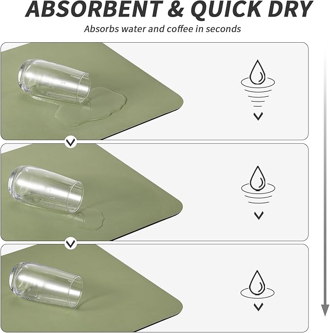 - ☕【Wide range of uses】 It is not just a coffee bar mat, but also a high water absorption and quick dry pad that can be widely used as a drying mat for kitchen countertop, cups, water dispensers, mixers, ice cream machines, dish washing racks, dinner plates, tableware, etc., or as a food pad for pets.