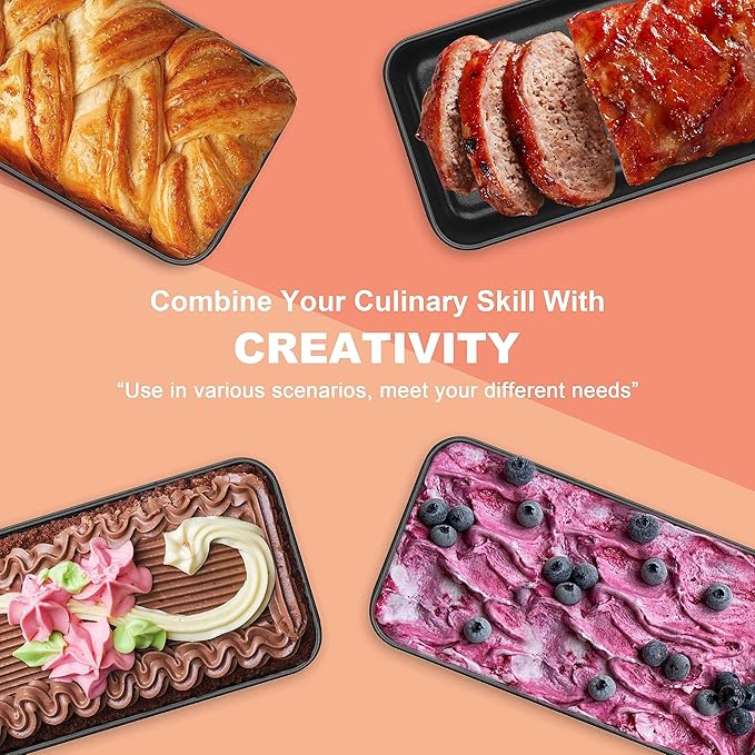 - Functional loaf pans, processed into uniform thickness, provide excellent heat conductivity and distribution, enable you to bake breads evenly, suitable for baking all kinds of loaf, bread, meatloaf, cake, and lasagna at home or in bakery alike