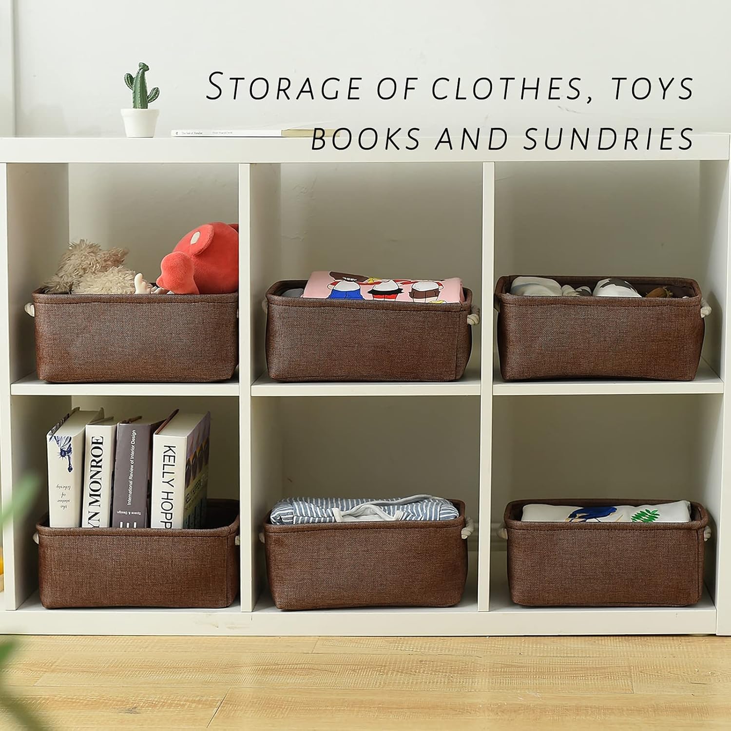 TheWarmHome Storage Basket for Organizing - 12x8x5 inch Small 6 Pack Collapsible Storage Bin for Shelves with Handles, Canves Storage Box for Cloth Closet Organizer Gift Toy (Brown)