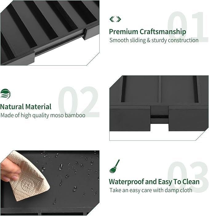 Utoplike Bamboo Silverware Drawer Organizer, Expandable Kitchen Utensils Drawer Organiser, Cutlery Tray Dividers, Flatware Caddy Drawer Insert, Office Supplies, Black 5-7 Slot