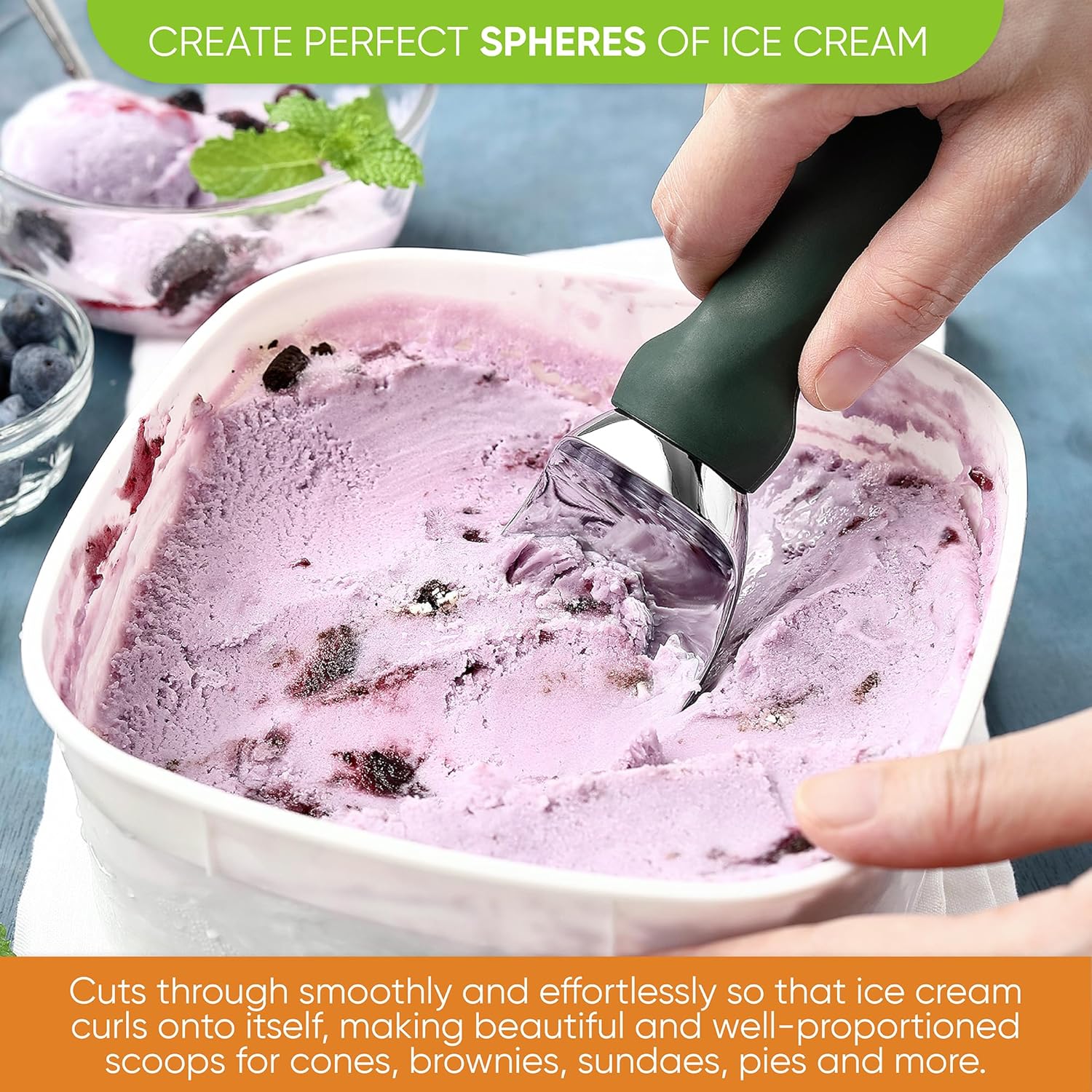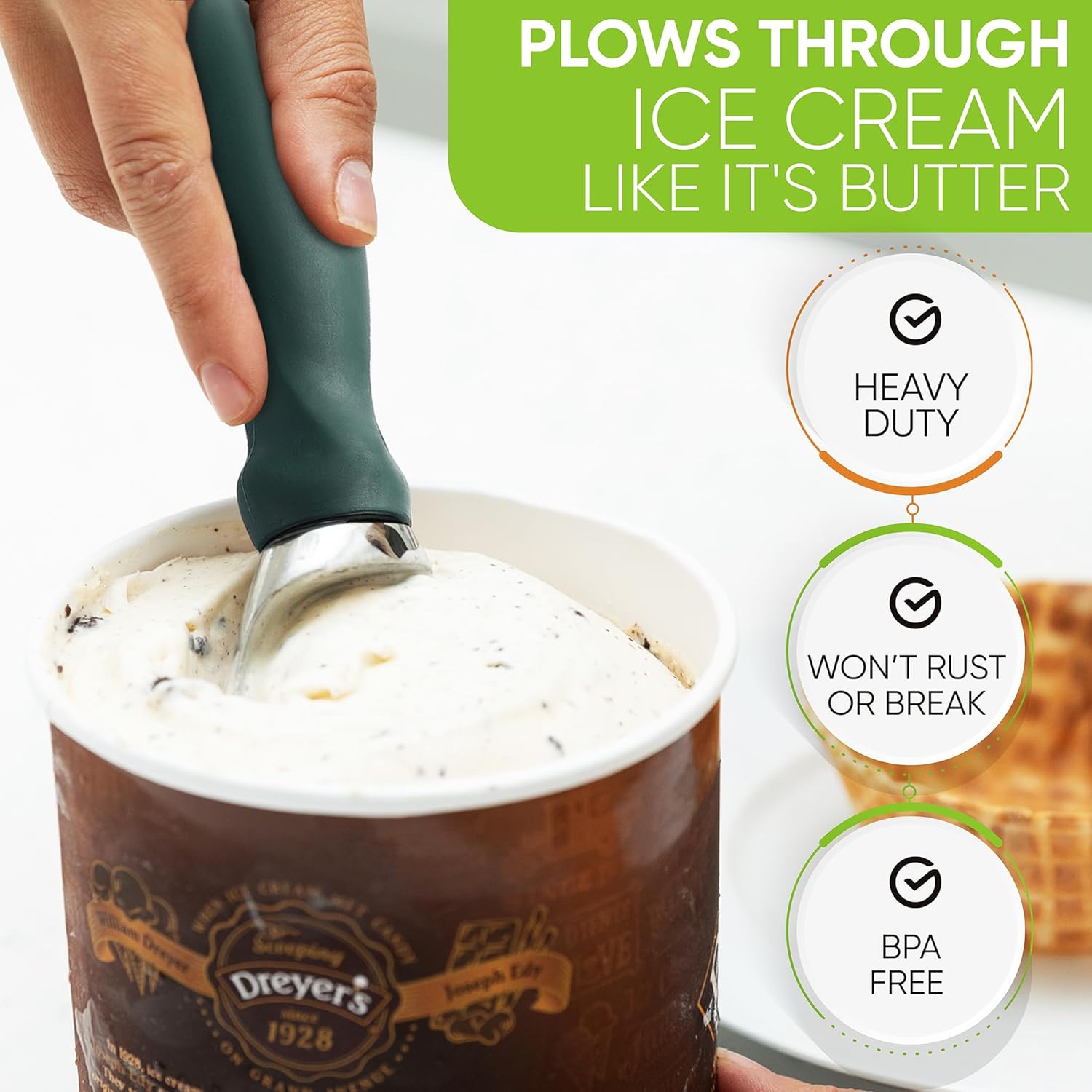 Spring Chef Professional Ice Cream Scoop with Soft Grip Handle - Heavy Duty Ice Cream Scooper for Cookie Dough, Frozen Yogurt, Gelato, Sorbet, Melon - Dishwasher Safe Kitchen Tool - Pine Green