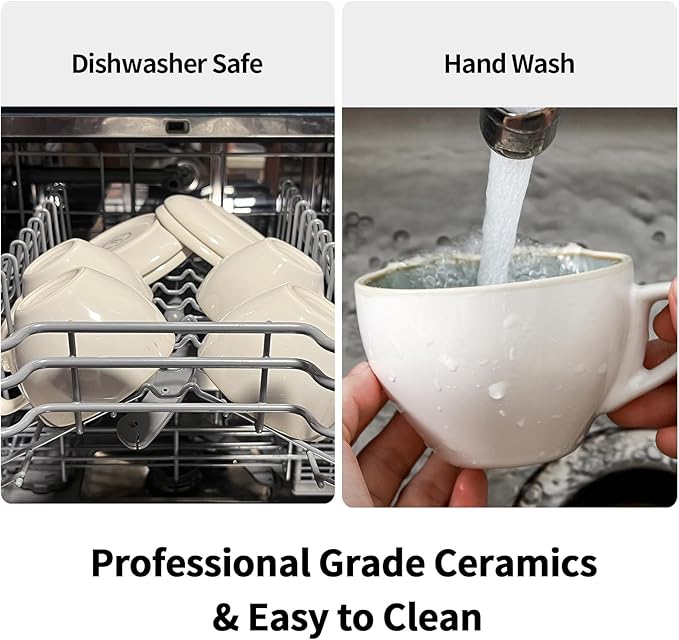 - Safe for Dishwasher,Microwave Safe----The sleek ceramic glaze makes it easy to clean the coffee stains.This rustic cafe cups set gives off an uncomplicated and polished allure.It's perfect for serve up piping hot cups of coffee, tea, signature lattes, and other warm, indulgent beverages.