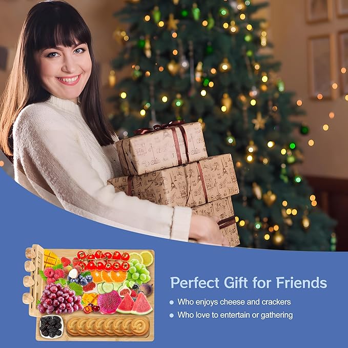 - 【Perfect Gift for Any Occasion】The cheese tray board makes a great gift, the cheese board charcuterie board is suitable for various occasions. Great for the holidays, ladies night out, anniversary gift, stocking stuffer, thanksgiving plate, housewarming gift, family gathering, birthday gift, or everyday entertaining.