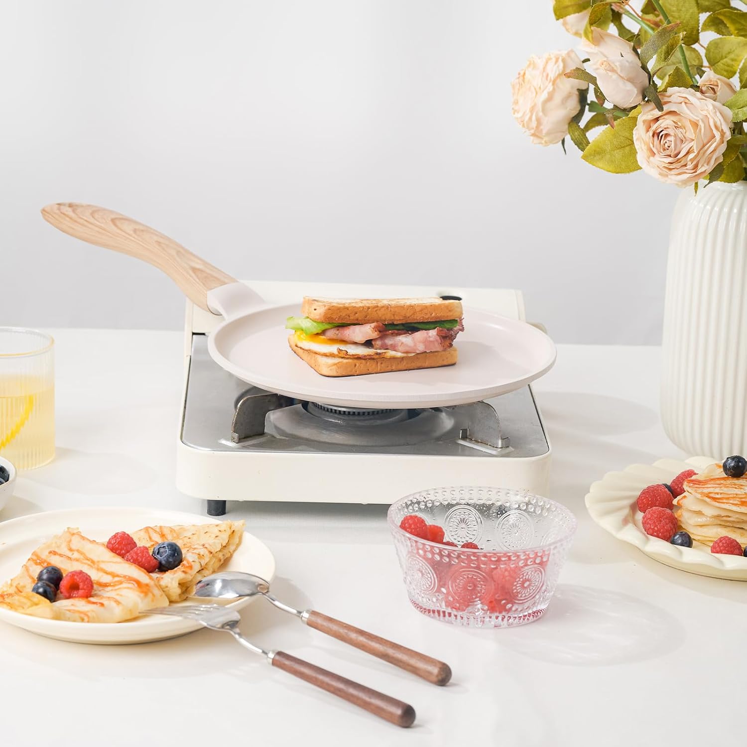 - Compatible With All Stovetops - Magnetically conductive stainless steel base makes the pancake pan suitable for all stovetops, including induction. Conducts heat quickly and evenly for easier temperature control