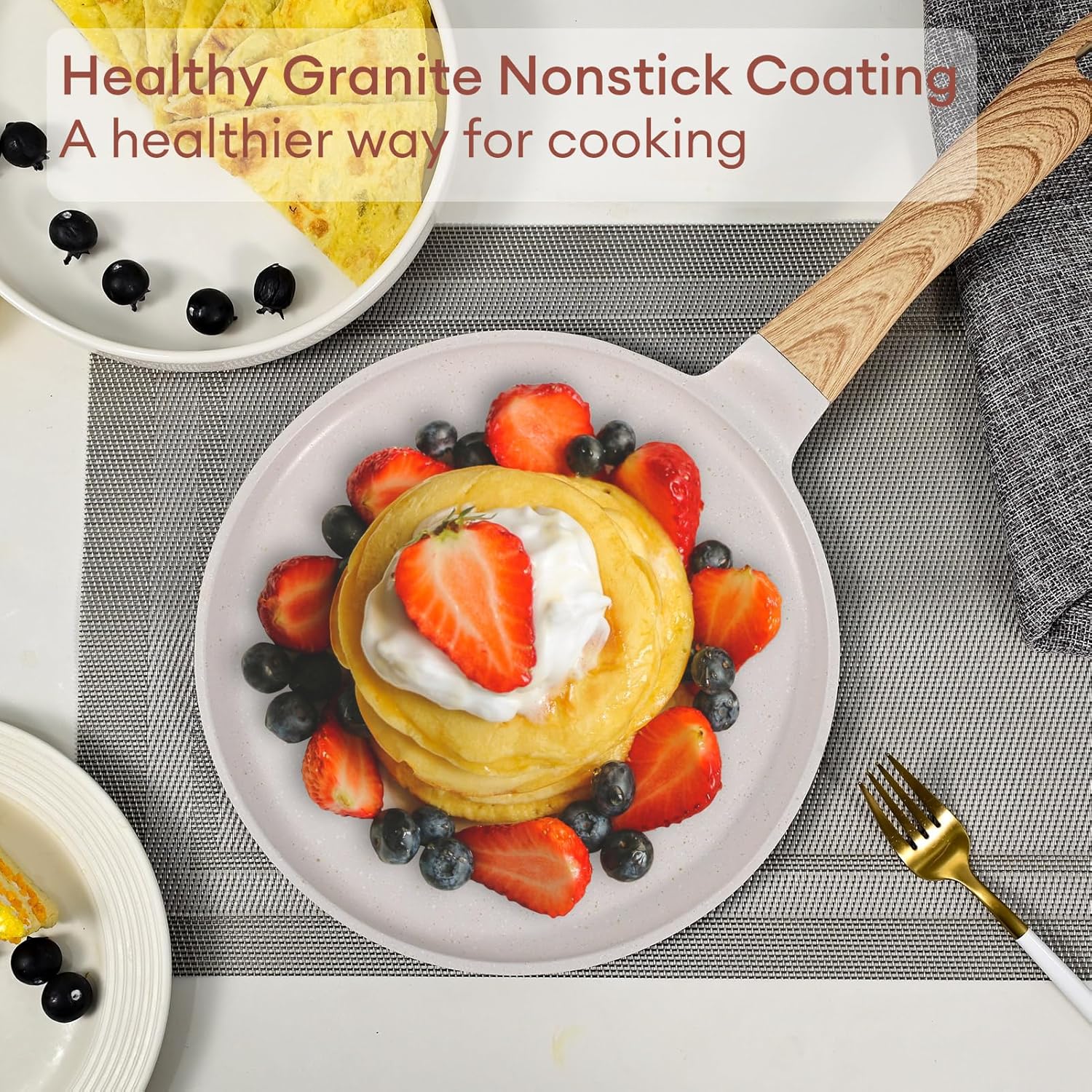 JEETEE Crepe Pan Nonstick, 9.5 inch Comales Para Tortillas Griddle Pan for Stove Top, Granite Coating Flat Pancake Pan Dosa Tawa, PFOA FREE and Induction Compatible (Beige)