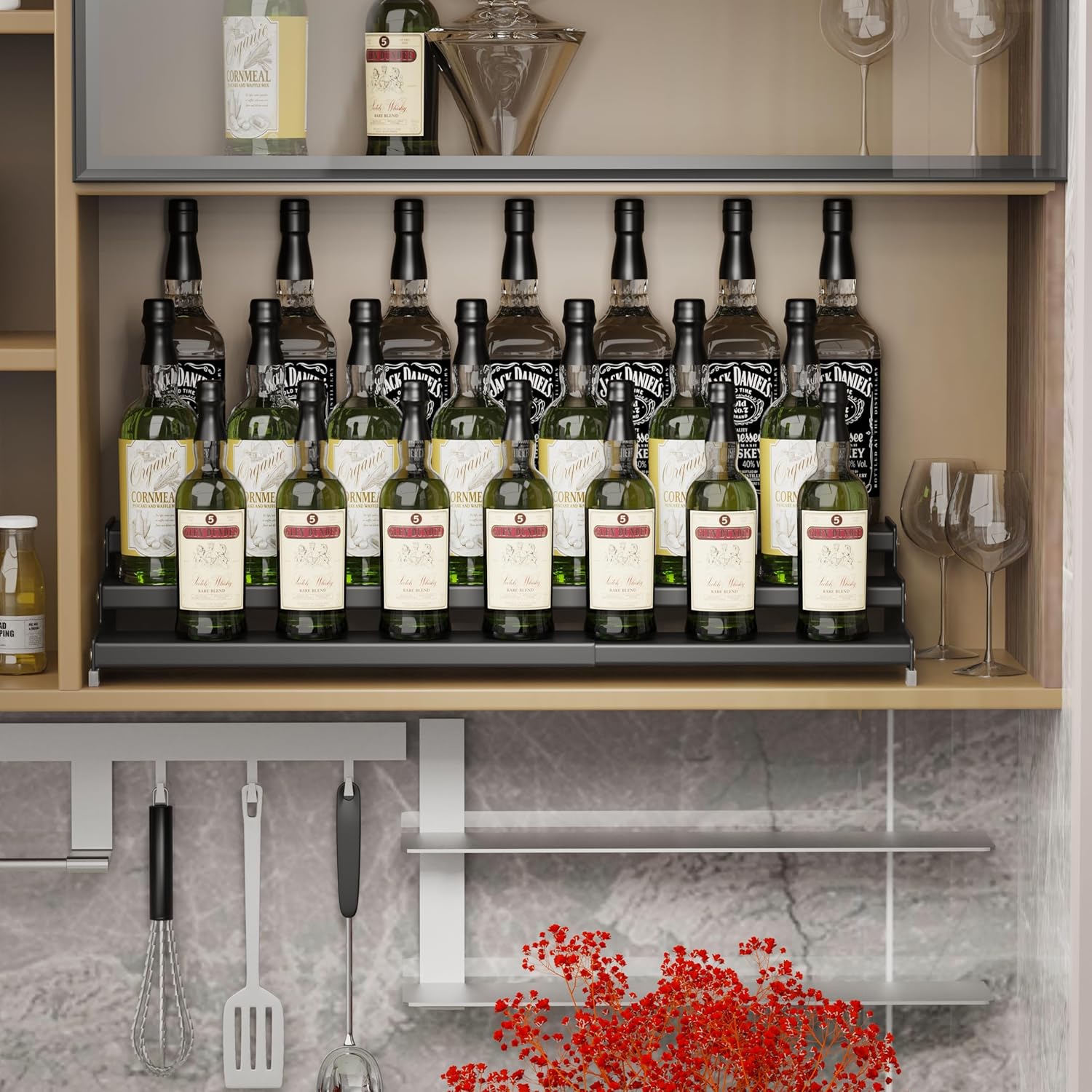 - ā[Expandable Size]The spice rack organizer is retractable and has a width range of12.8'' to 24.01'',you can put anywhere you need.Ideal for storing spice,condiment,pepper,sauces,seasoning,cosmetics,dressing,bottles,jars,cans,cup,more.