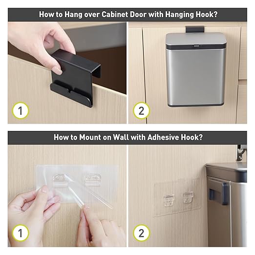- 【Triple Placement Options】Whether you hang it over cabinet doors, mount it on walls, or simply place it on countertops, this trash can is designed for adaptability to fit your space seamlessly.