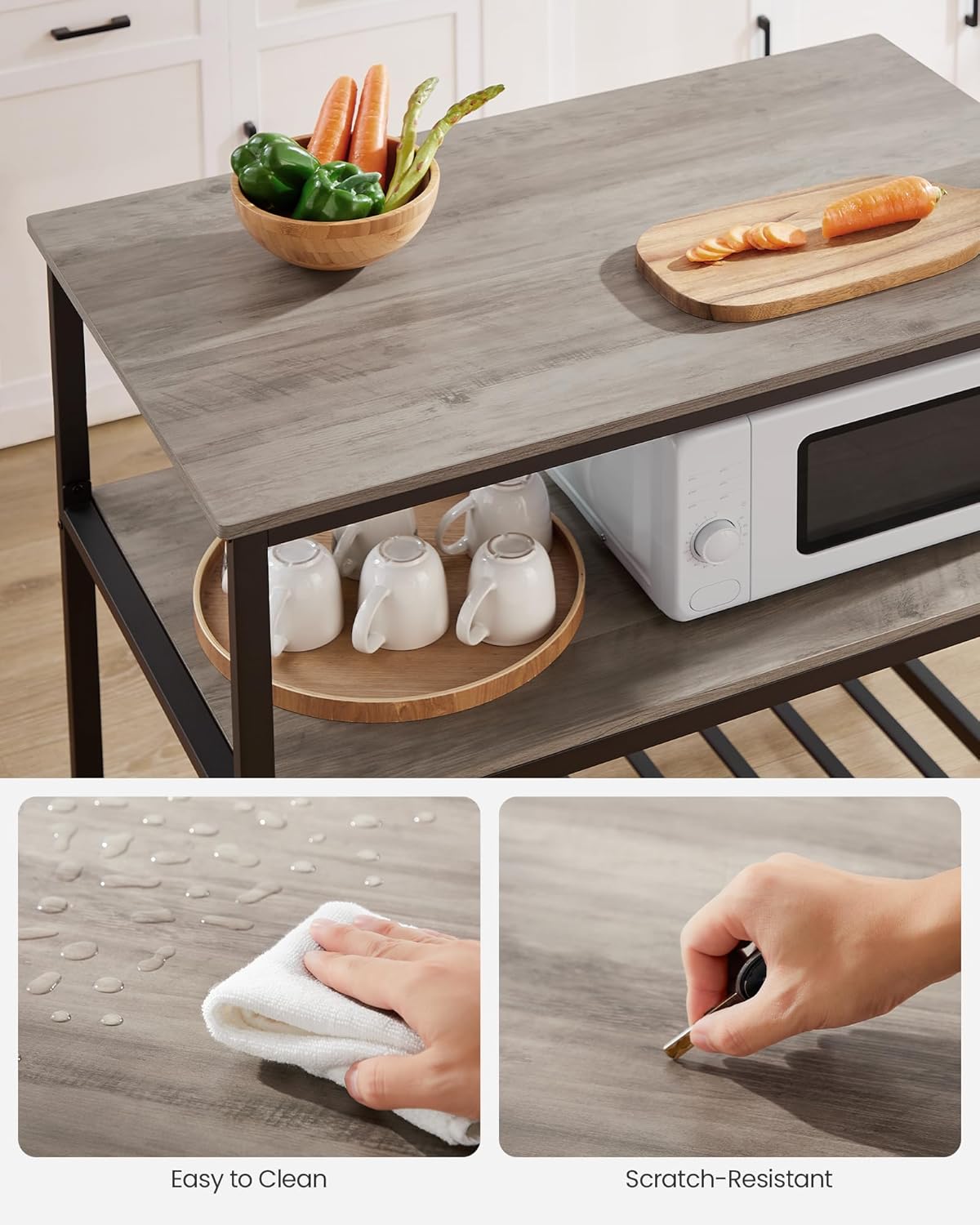 VASAGLE Kitchen Island with 3 Shelves, 39.4 Inches Width Kitchen Shelf with Large Worktop, Stable Steel Structure, Industrial, Easy to Assemble, Greige and Black UKKI005B02