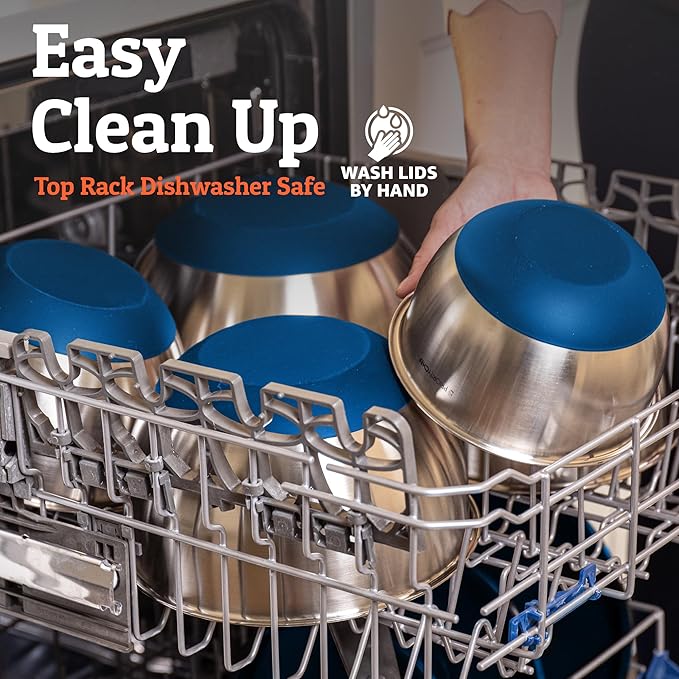 - Dishwasher Safe - Save time with the clean up too, this premium mixing bowl set is also top rack dishwasher safe [wash lids by hand].
