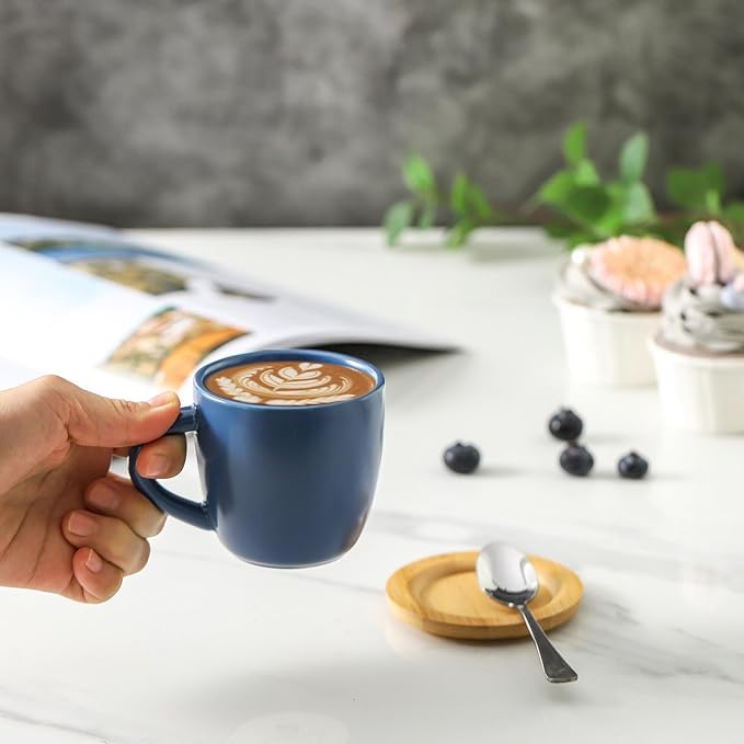 - MATTE BLUE GLAZE: Hasense cappuccino cups are designed with pure glaze which can add a modern touch to your kitchen life. Blue tea cups show elegance and generosity and are compatible with most tableware.