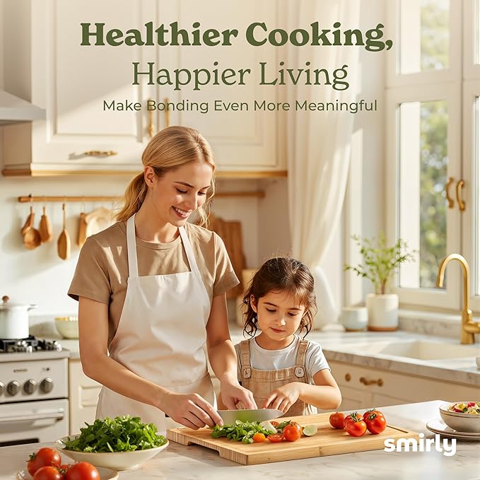 - Add Simplicity and Convenience - Our cutting boards for kitchen save you time and add functionality. Smirly’s bamboo cutting boards feature non-slip feet, easy-grip handles, and juice grooves. These durable wooden cutting boards are built to last.