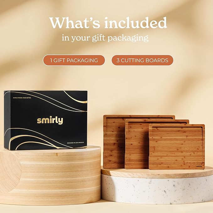 SMIRLY Bamboo Wooden Cutting Boards, Wood Cutting Board for Kitchen, Set of 3 with Deep Juice Grooves, Ideal for Chopping Meat Vegetables, Charcuterie Cheese Serving Tray, Kitchen Gadgets