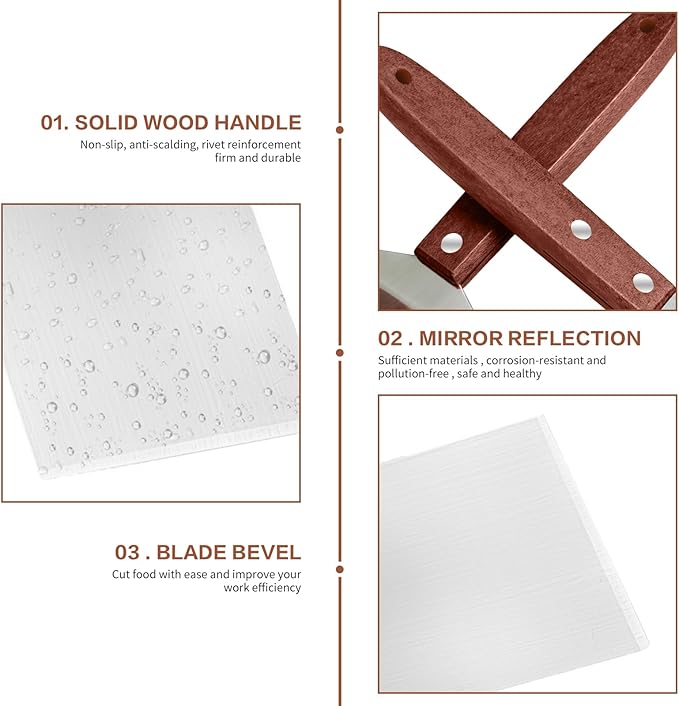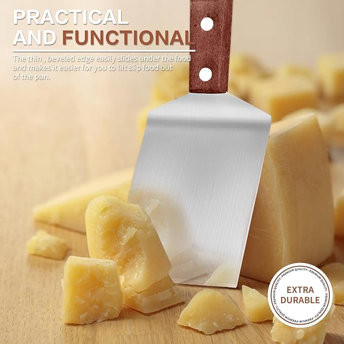 - 4.Multi-functional baking utensils - use our kitchen stainless steel spatula as a cheese spatula, steak frying spatula, cake spatula, and more!