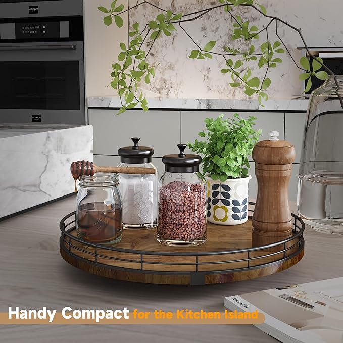 - πππππππππ πππ:This lazy susan is enough to be used nearly anywhere, perfect in the kitchen, cabinets, dining room, office, etc. on your kitchen or dining table for organizing condiments, napkins, decor, candles. Easily reach all your medicine, spices, canned goods in your pantry. Next to your stove, hold all the essentials essences, bowls, greenery, and a butter dish. Good idea for the office desk and craft room to organize. Keep your coffee stuff perfect at your coffee station.