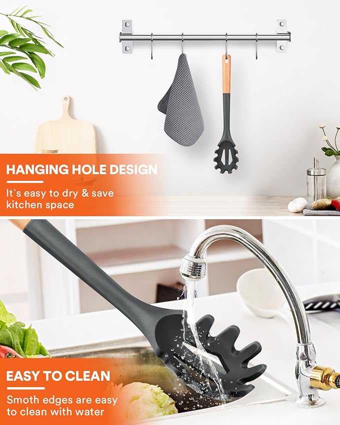 - Just Want To Provide The Best For You : The soft food-grade silicone head is designed for noise-free cooking. Unique sawtooth design, easy to pick up noodles. Whether it is used for stirring or serving spaghetti. Our silicone pasta fork will add more fun to your kitchen