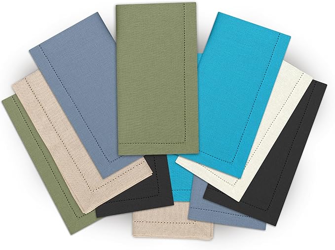 Ruvanti Premium Linen Napkins Set of 12-20x20 Inch, Classic Hemstitch, Mitered Corner Cloth Napkins - Soft, Elegant Dinner Napkins Cloth Washable for Weddings, Parties, Everyday Use - Multi Color