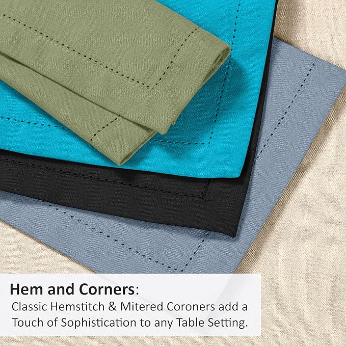 - Premium Material & Elegant Design: Cloth Napkins are Crafted from high-quality 20% Flax linen and 80% Cotton fabric known for their durability to ensure long-lasting use and luxurious feel. These are breathable & has ability to become softer over time. The Classic Hemstitch & Mitered Corners add a touch of sophistication to any table setting.