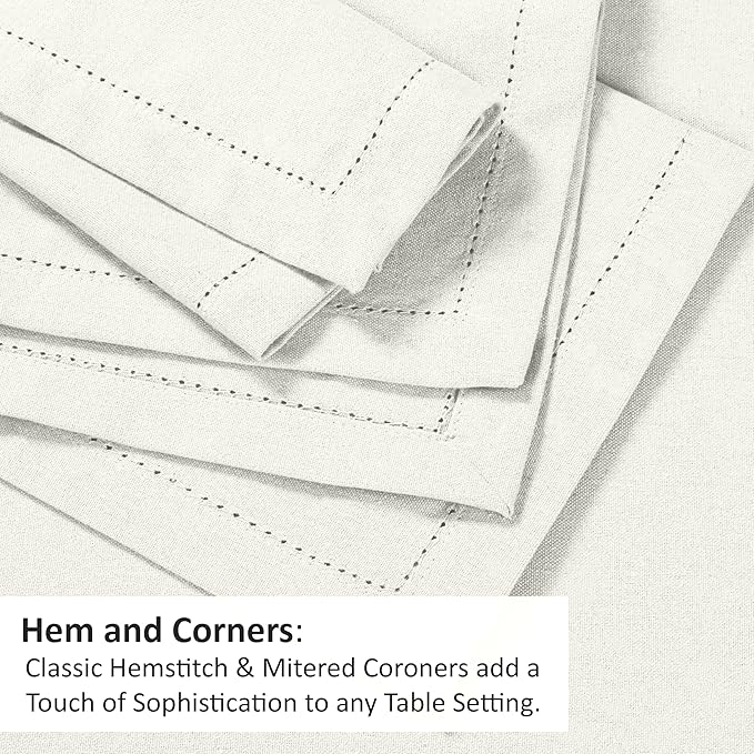- Premium Material & Elegant Design: Cloth Napkins are Crafted from high-quality 20% Flax linen and 80% Cotton fabric known for their durability to ensure long-lasting use and luxurious feel. These are breathable & has ability to become softer over time. The Classic Hemstitch & Mitered Corners add a touch of sophistication to any table setting.