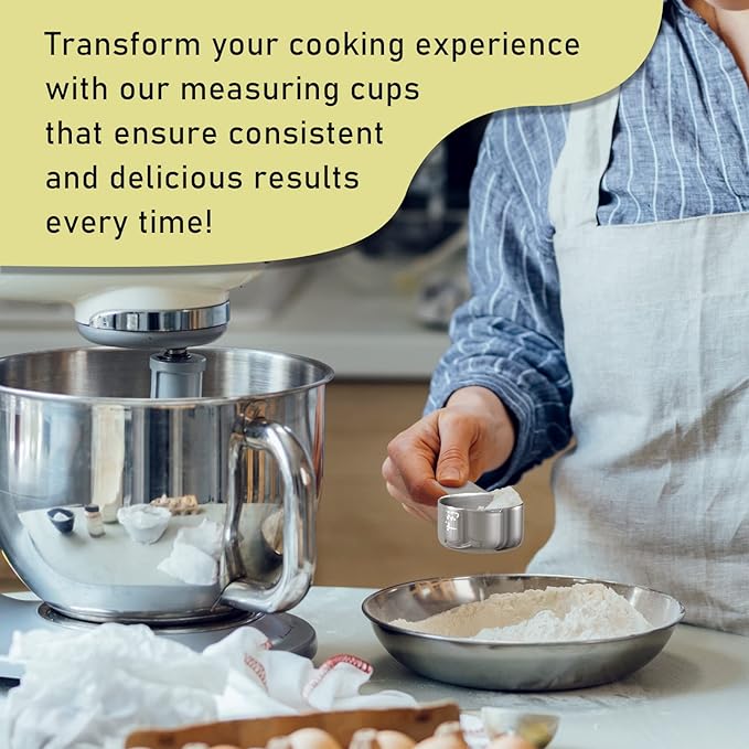 - 【Durable】The integrated molded 304 stainless steel measuring cup is designed for sturdiness and durability, with a solid construction that can withstand regular use without breaking or warping